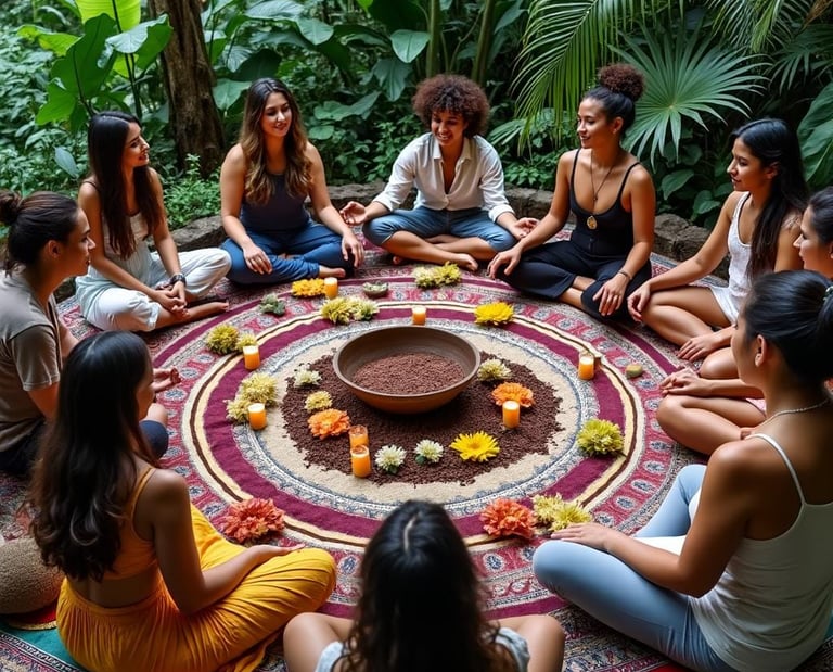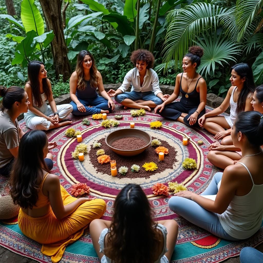 Unimos práticas de cura energética (Reiki Xamânico, leitura de oráculos) com rituais da ancestralidade feminina (círculos de partilha, RODA do cacau), para apoiar o processo de libertação e reconexão.